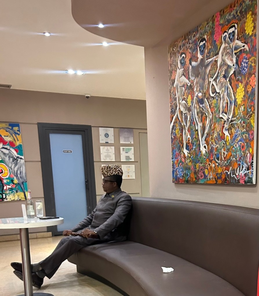 I met a sosie of Mobutu two months ago at the Pullman Hotel in Kinshasa. Told him, “Très bien habillé Monsieur” but I forgot to ask about his twin wives. Oh! Btw- don’t be sorry for the twins. The are in exile, chopping Mobutu’s stolen money, have made peace and just celebrated their 80th birthday looking real cozy. So really, abarira, twiririre… Ndumiwe!